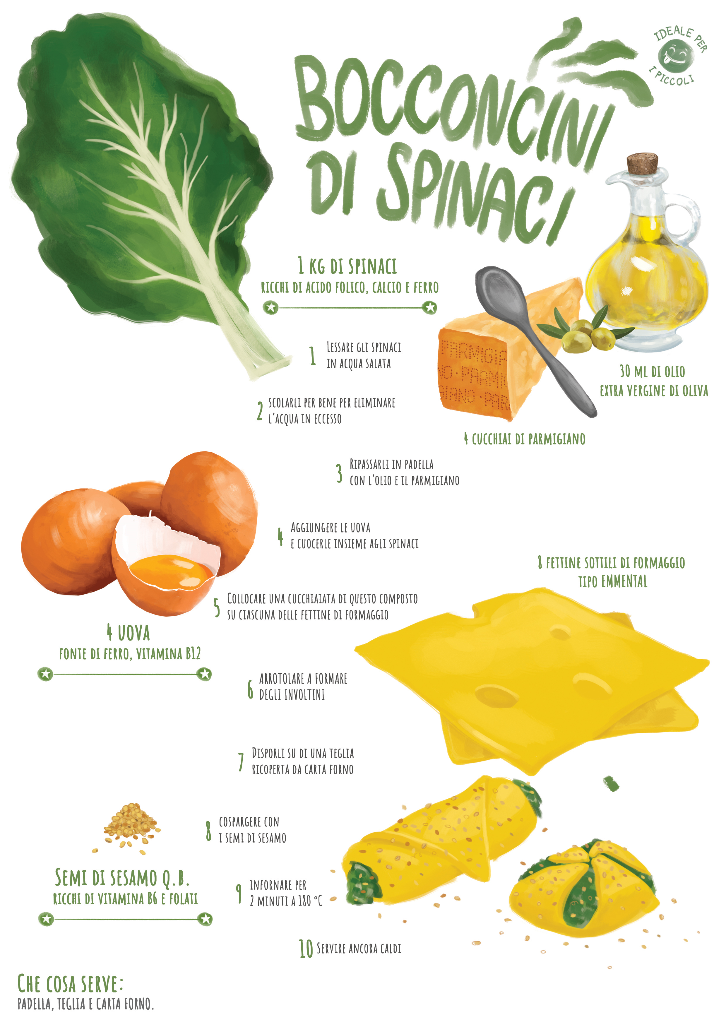 1 kg di spinaci (ricchi di acido folico, calcio e ferro)