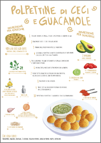 Unire tutti gli ingredienti preparati per ottenere un gustoso guacamole con cui accompagnare le polpettine di ceci.